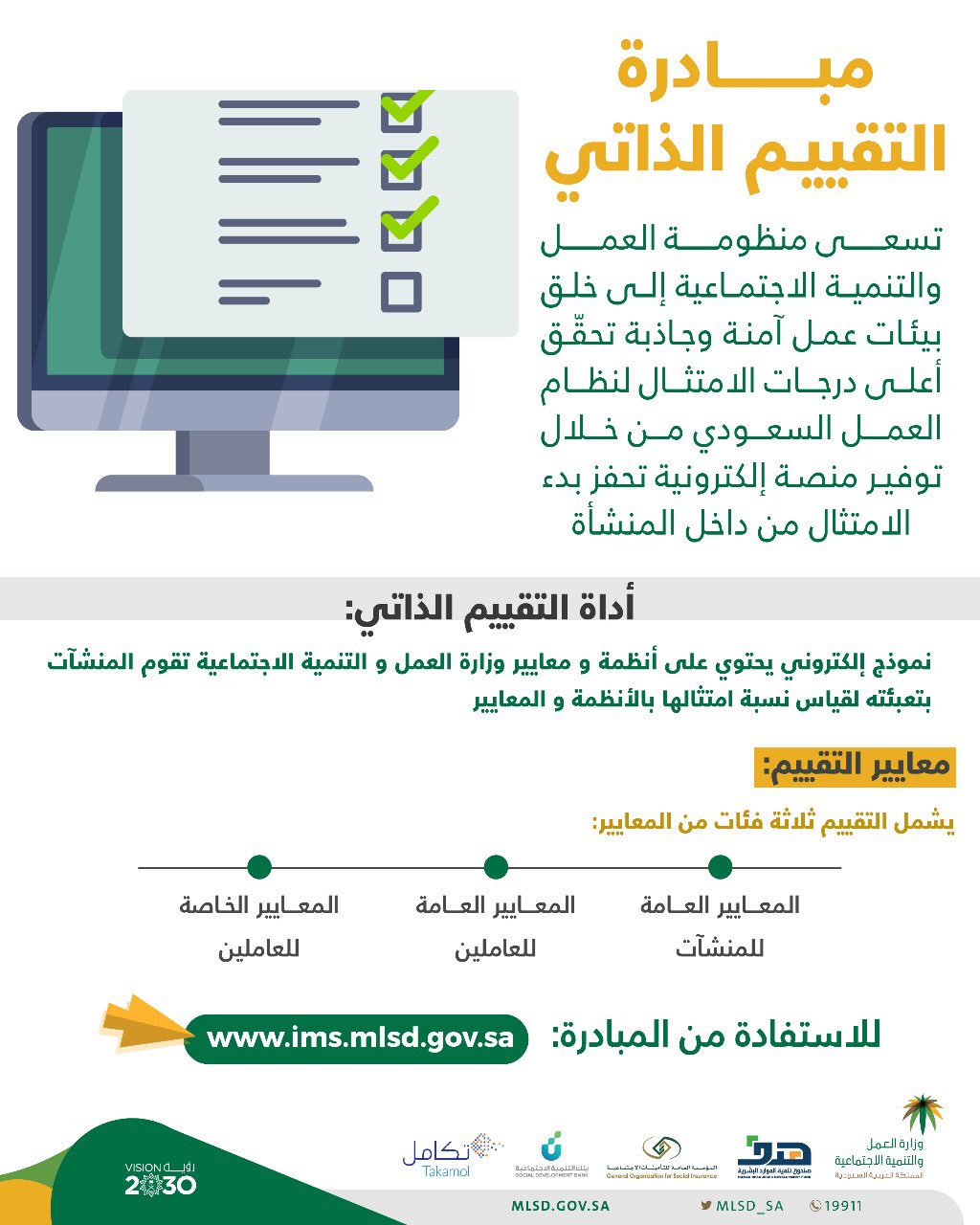 وزارة الموارد البشرية والتنمية الاجتماعية در توییتر توفر مبادرة التقييم الذاتي نموذجا إلكترونيا تقوم المنشآت بتعبئته لقياس امتثالها للأنظمة والمعايير تحفيز القطاع الخاص للتوطين Https T Co Bzbtoxmszp