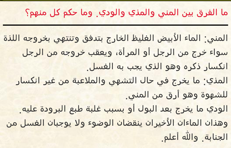 الفروق بين المني و المذي و الودي أرشيف فتاوى المنتدى الشرعية أخوات طريق الإسلام