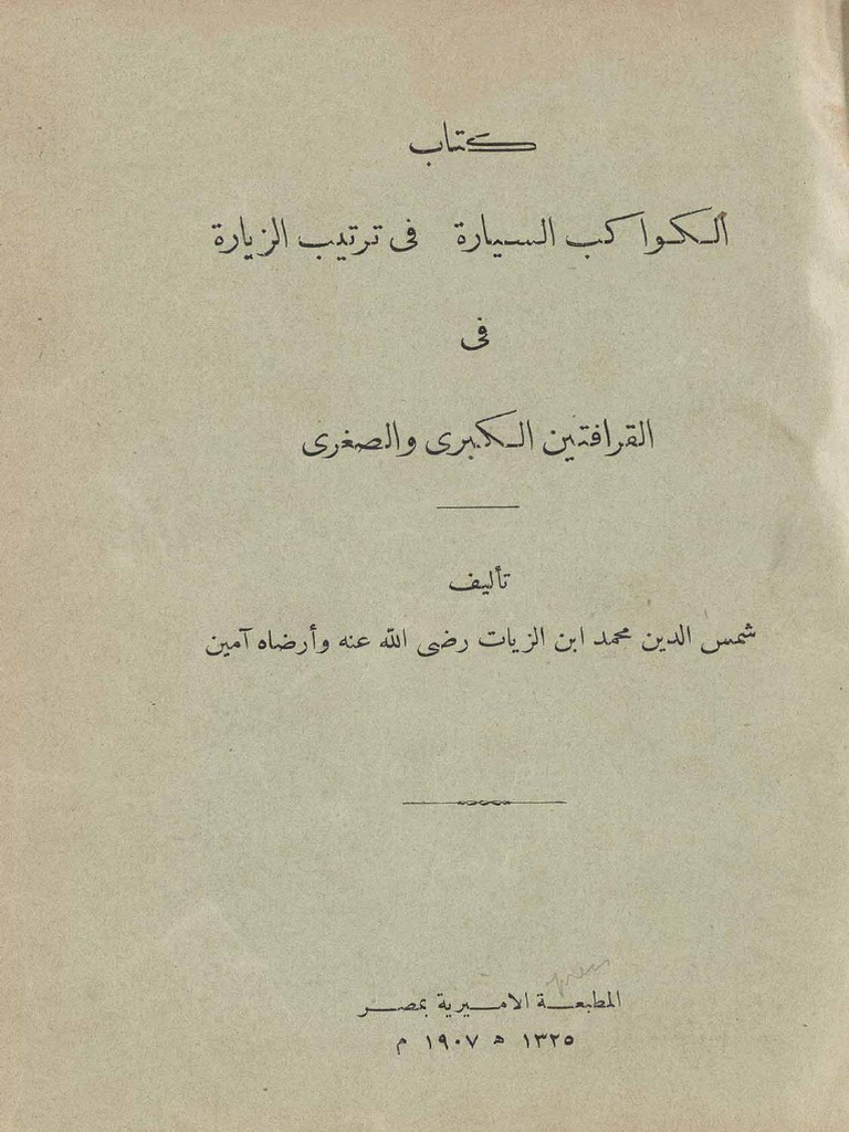 الكواكب السيارة في ترتيب الزيارة شمس الدين ابن الزيات