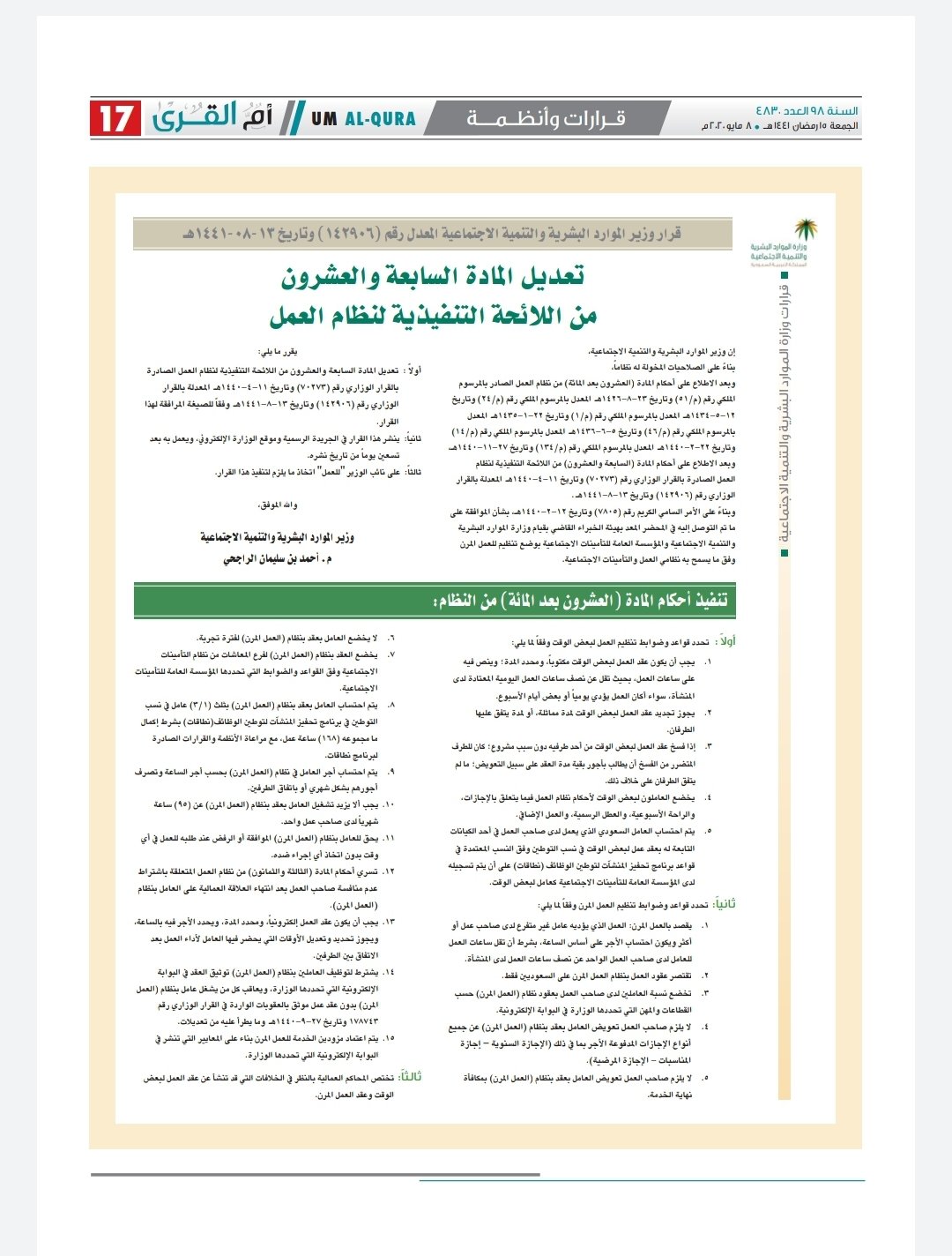 نظام العمل السعودي Twitterren تعديل المادة ٢٧ من الائحة التنفيذية لنظام العمل العمل المرن