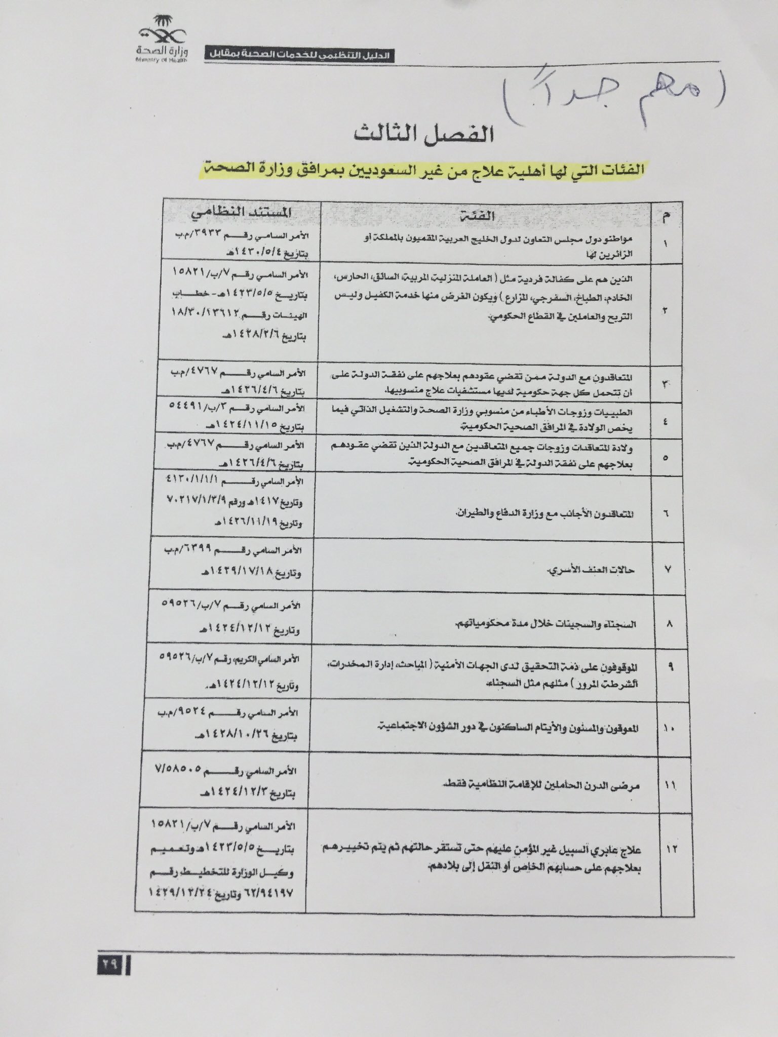 أحمد الزعاقي No Twitter الفئات التي لها أهلية علاج من غير السعوديين بمرافق وزارة الصحة Https T Co Zqnotzl4sa